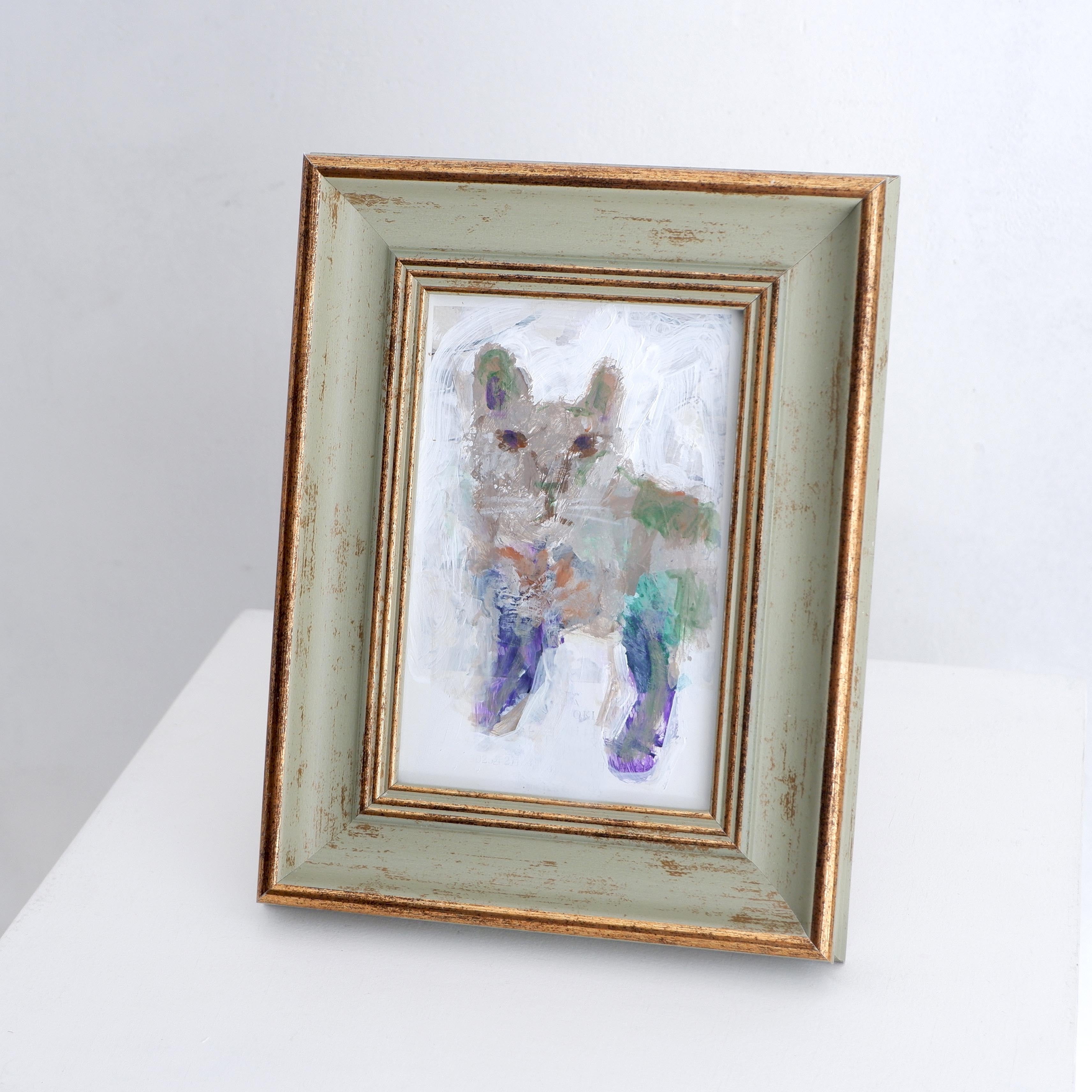 「おかえり」と出迎えてくれているような猫の優しい表情と色合いに癒される作品です。