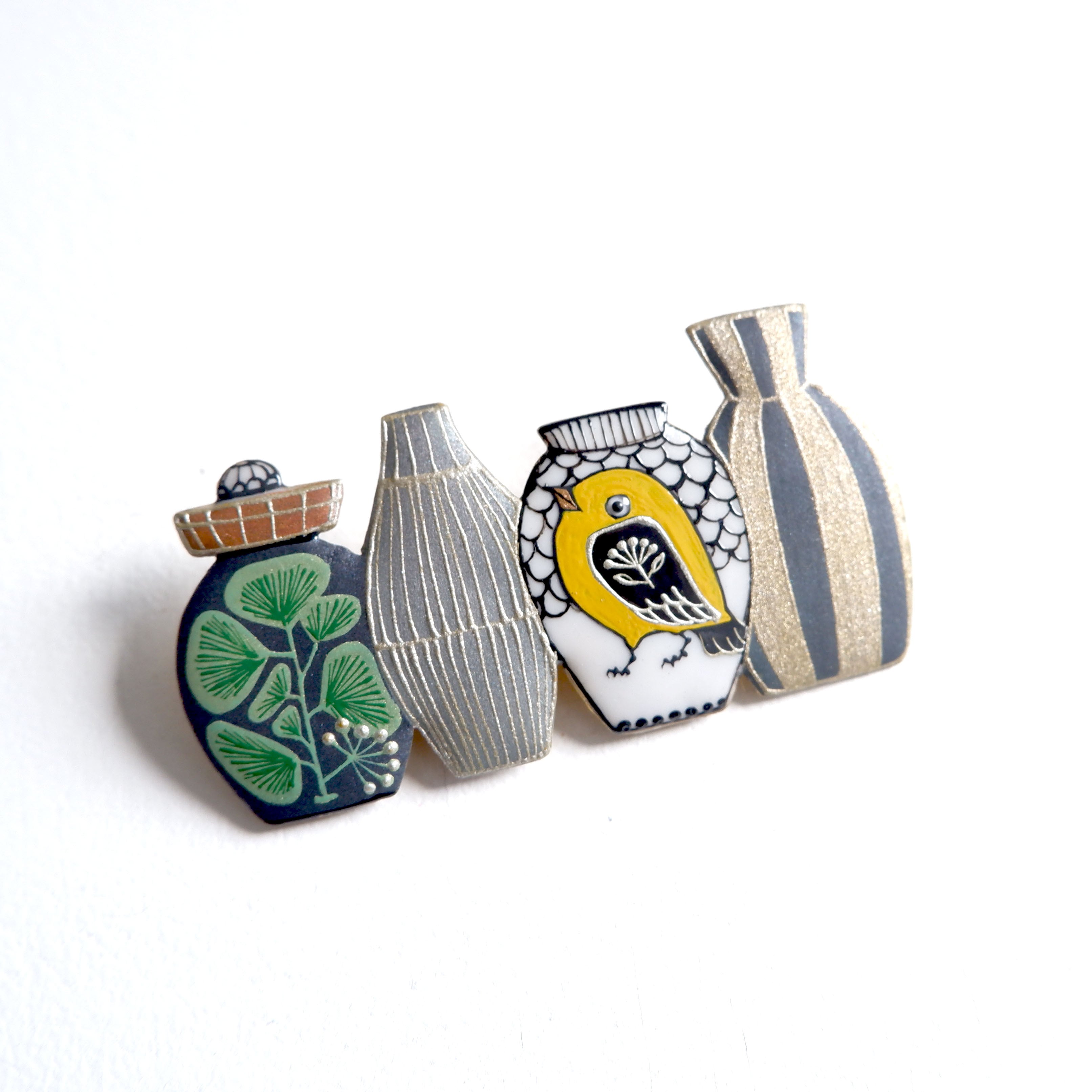 壺の中に隠れている小鳥の表情に癒される作品です。