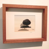 ミモザの木の下で少女が本を読んでいる作品です。背景の色彩もご自分で着彩されています。