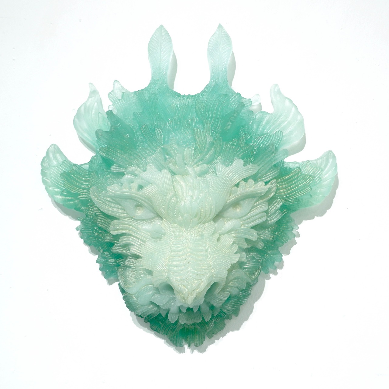 きりりとした鋭い視線と幾重にも重なるような美しい翡翠色が美しい作品です。
