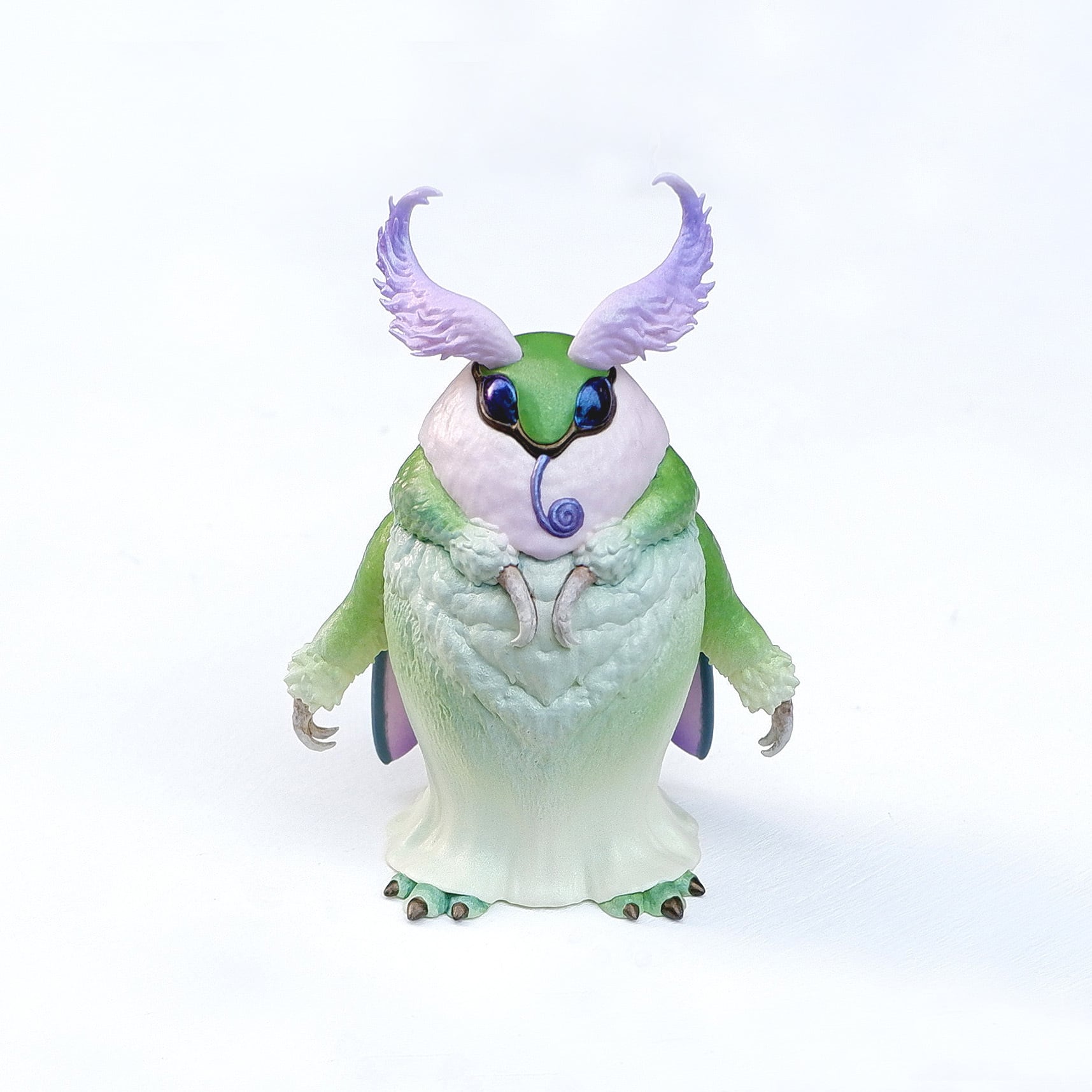 つぶらな瞳とふわふわ感がかわいらしく、美しい色彩のグラデーションとうっすら光るきらめきが心をくすぐる作品ですね。