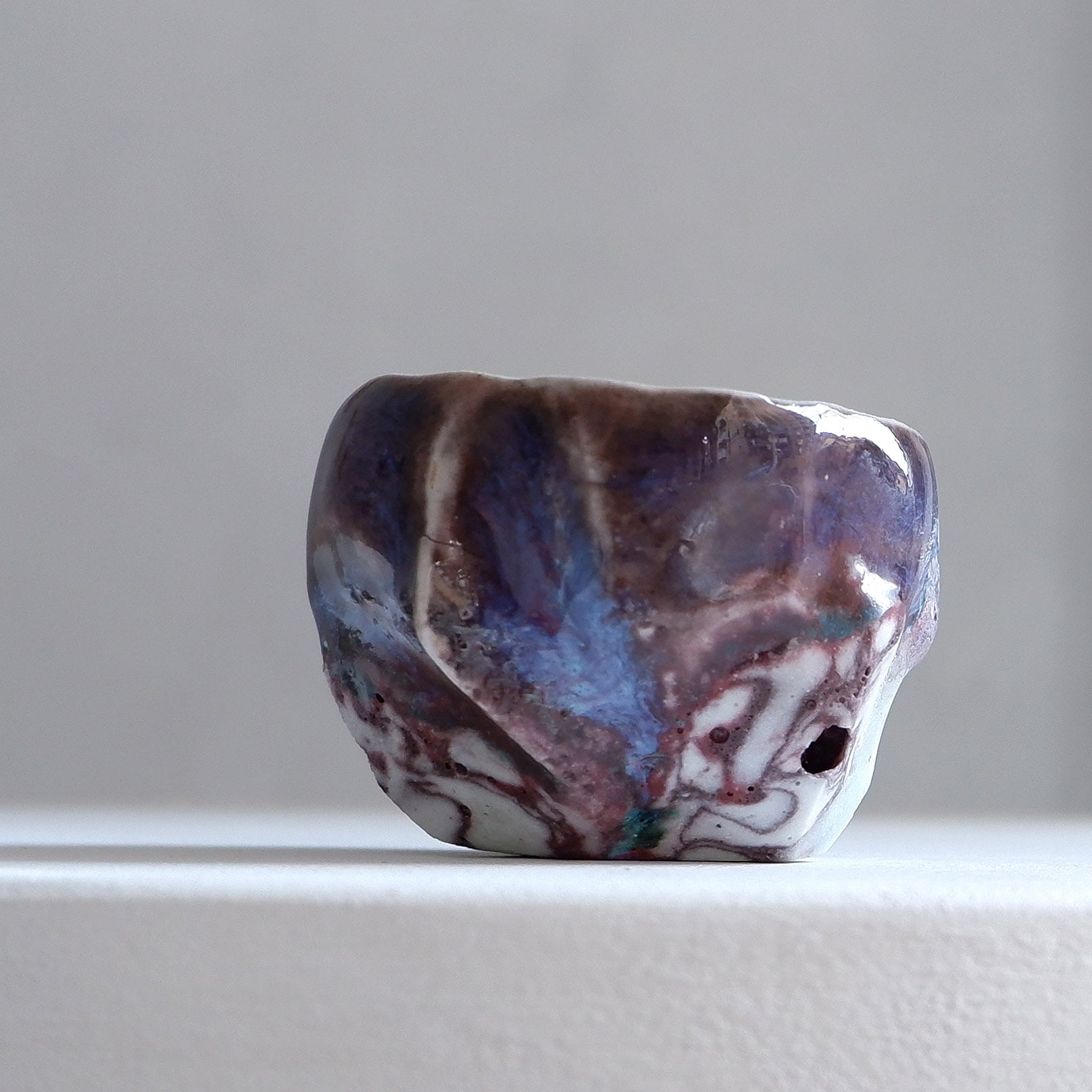 自然現象の模倣である陶芸の技法を使い、自然界には存在しない石を作っている。