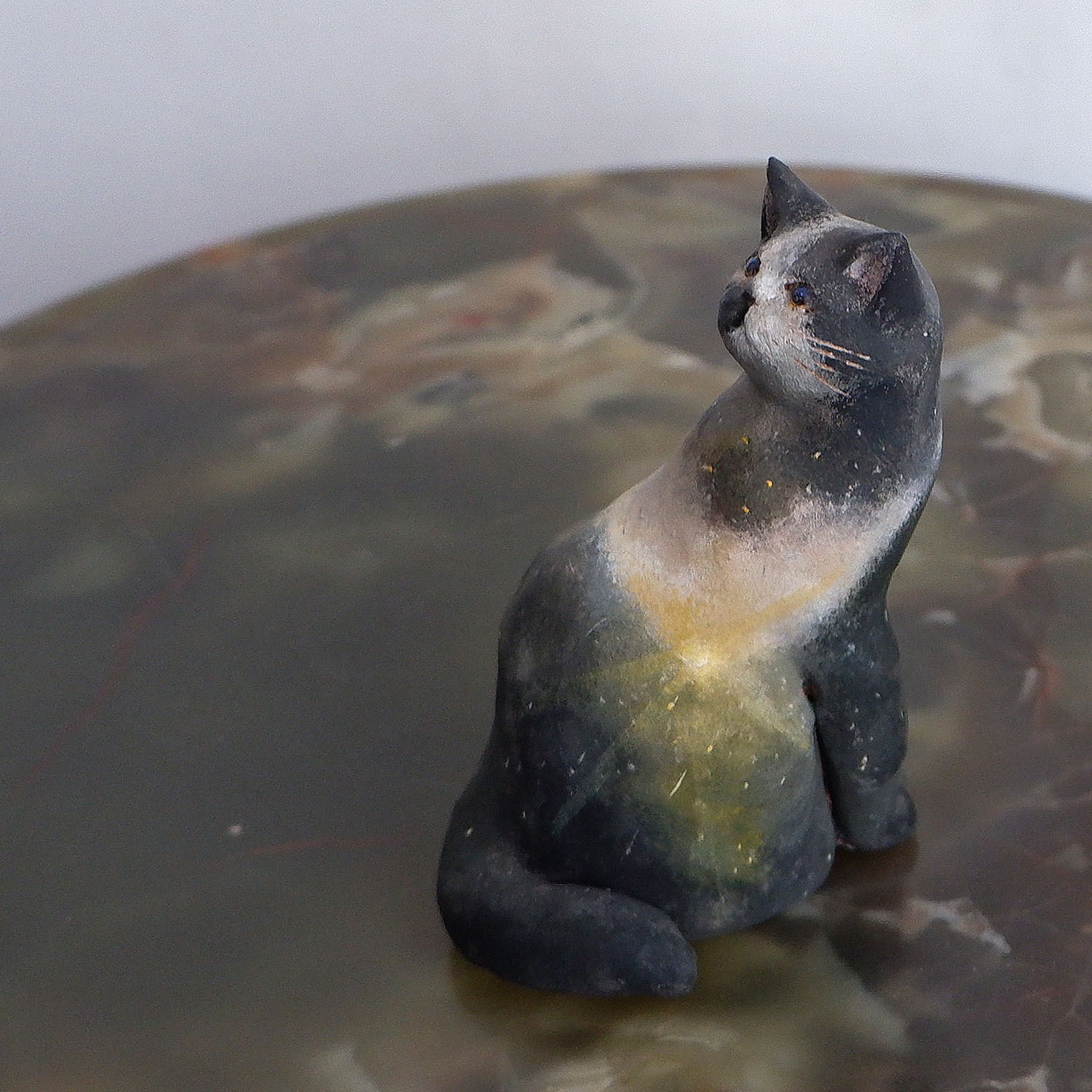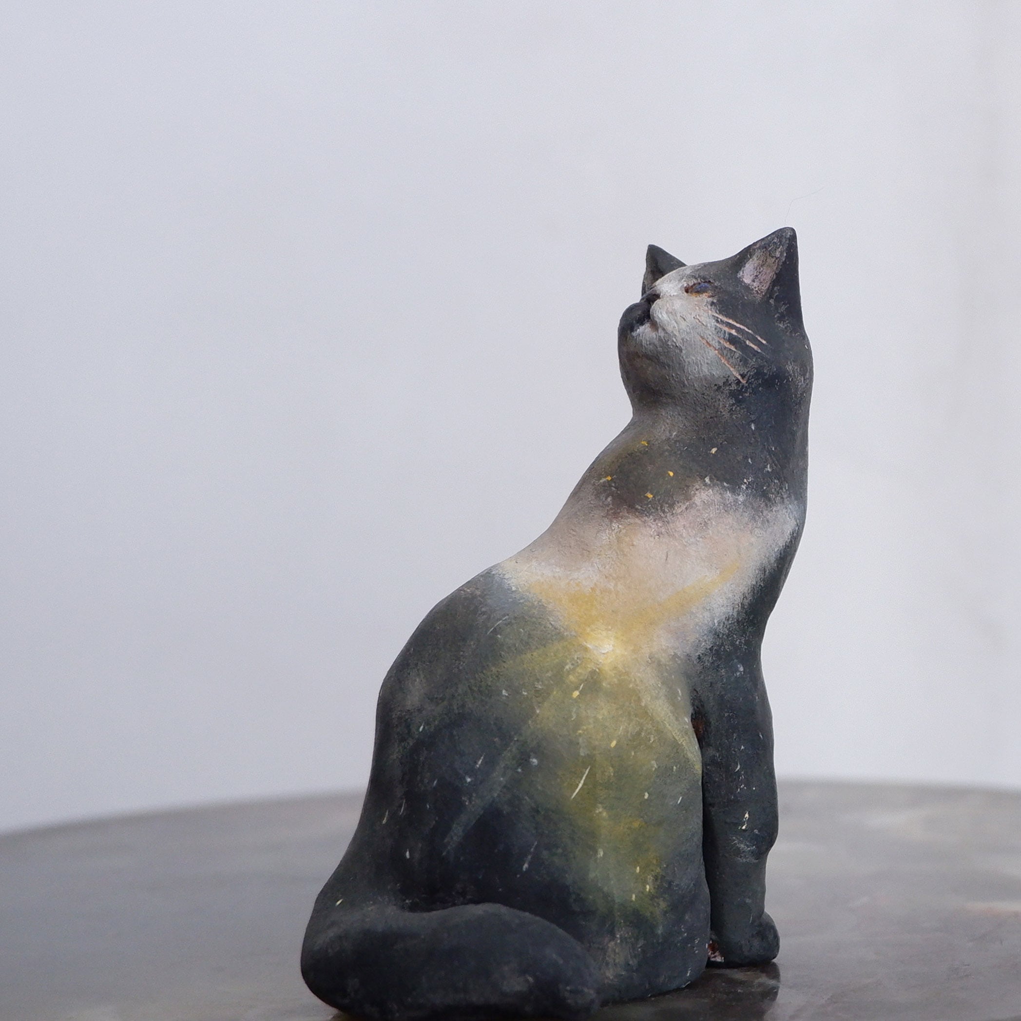 情報過多なせわしい日々の中、無意識のうちに手放してきた、生き物としての時間感覚や心の平穏があるように思います。人が生きる社会と、並行して存在する別の世界。それらを見つめる猫の眼差しに誘われて、「風景猫」シリーズが生まれました。心の底へ置いてきた大切なものと再会し、温める事ができるような表現を模索します。