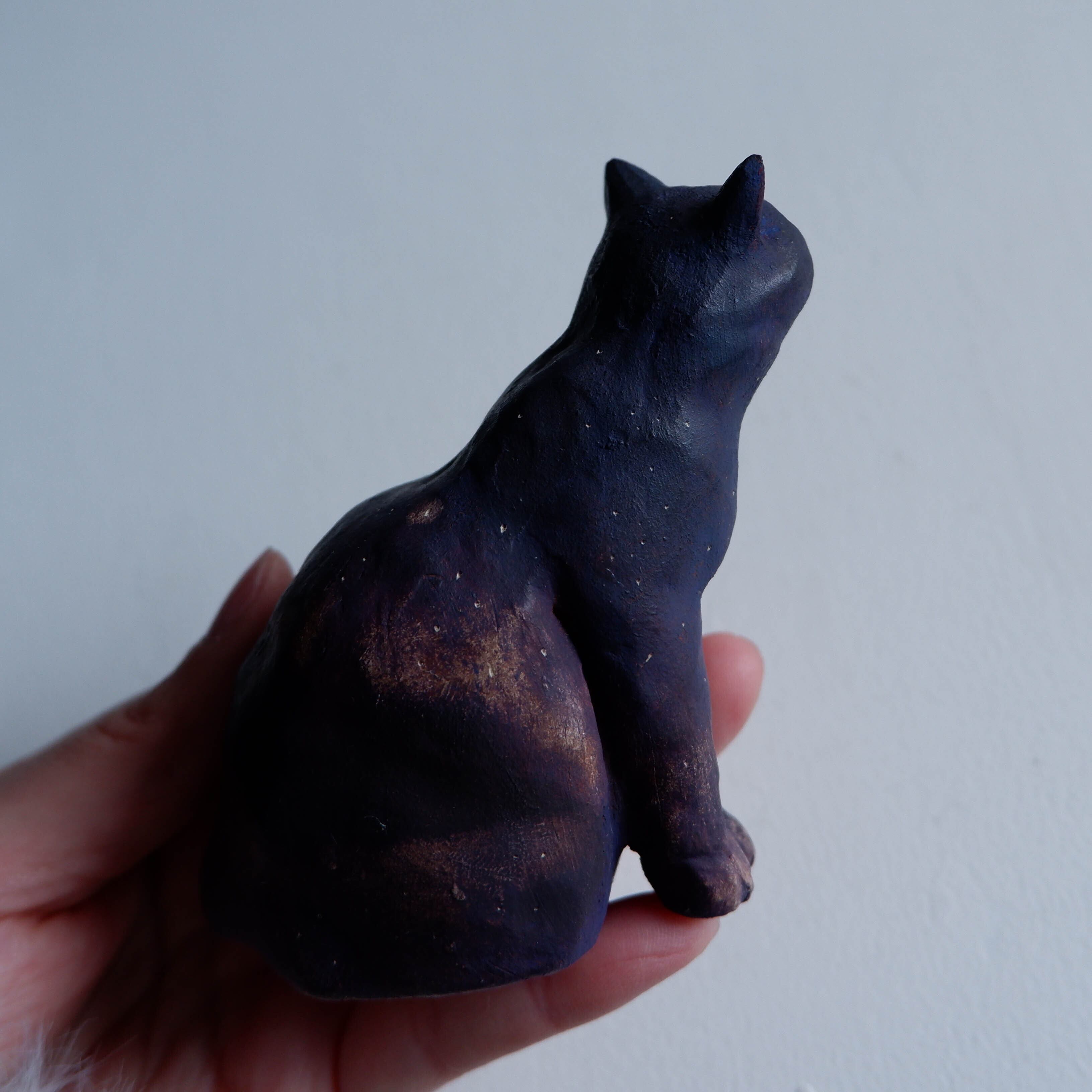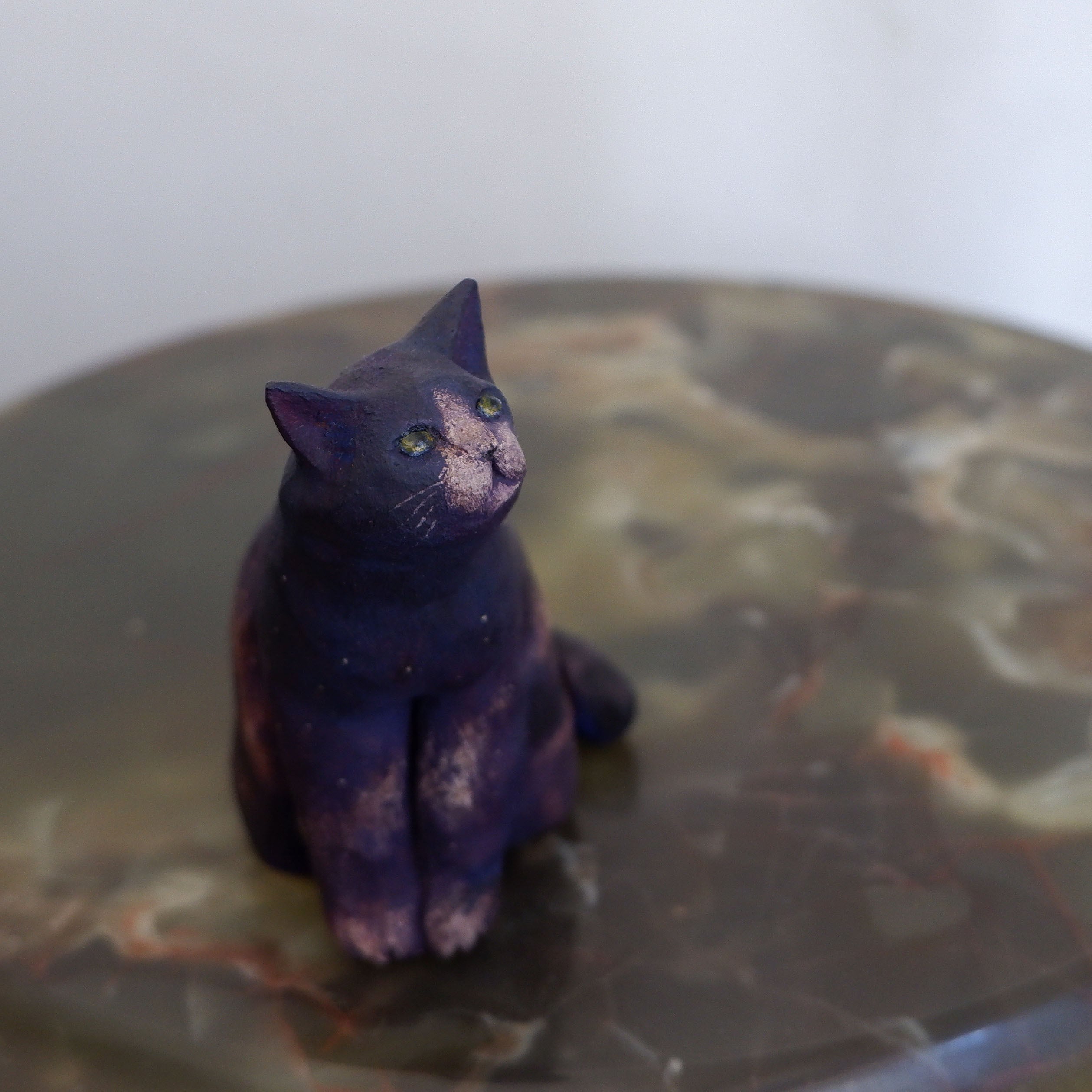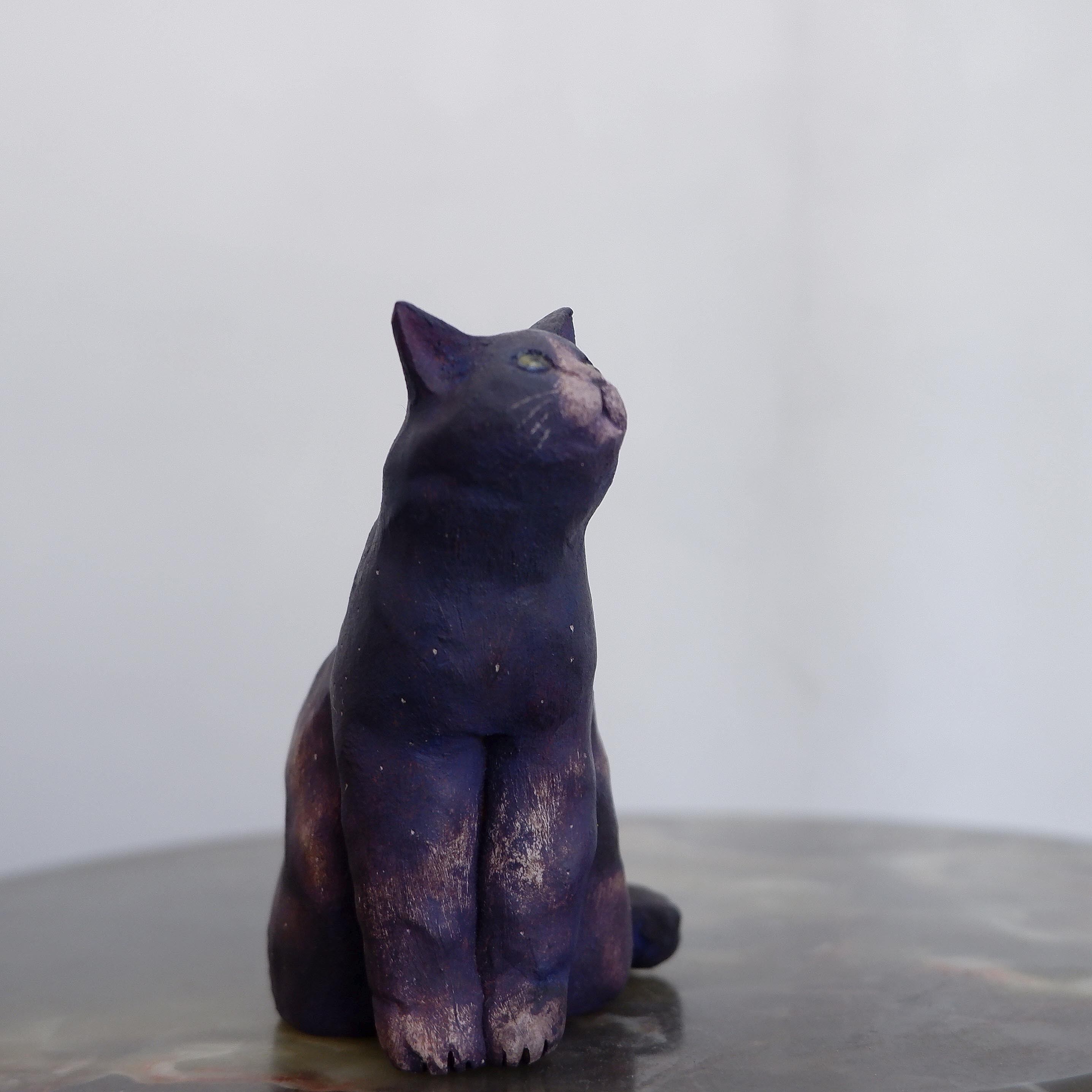 情報過多なせわしい日々の中、無意識のうちに手放してきた、生き物としての時間感覚や心の平穏があるように思います。人が生きる社会と、並行して存在する別の世界。それらを見つめる猫の眼差しに誘われて、「風景猫」シリーズが生まれました。心の底へ置いてきた大切なものと再会し、温める事ができるような表現を模索します。