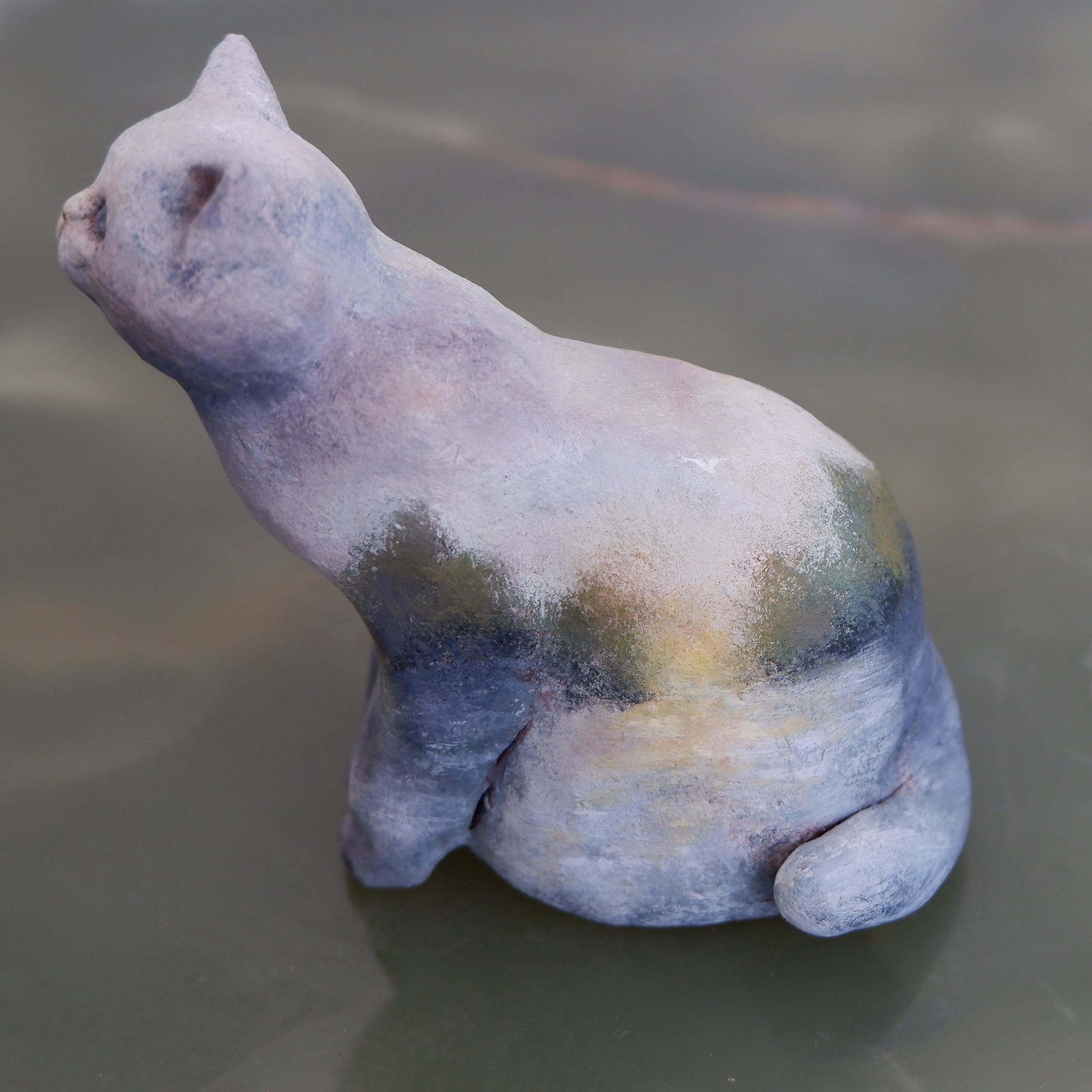 情報過多なせわしい日々の中、無意識のうちに手放してきた、生き物としての時間感覚や心の平穏があるように思います。人が生きる社会と、並行して存在する別の世界。それらを見つめる猫の眼差しに誘われて、「風景猫」シリーズが生まれました。心の底へ置いてきた大切なものと再会し、温める事ができるような表現を模索します。