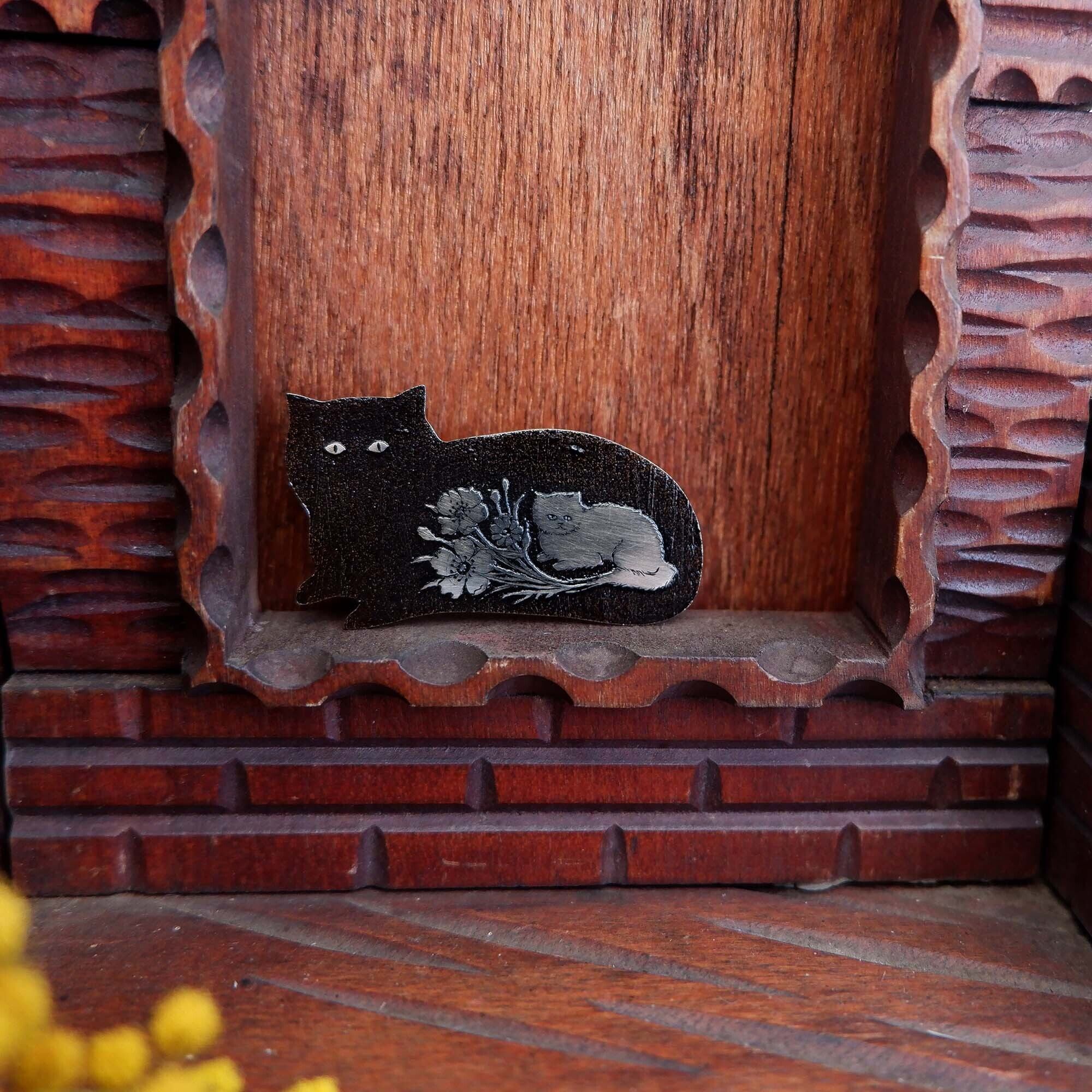 ブローチ【洋白・漆】凹版画