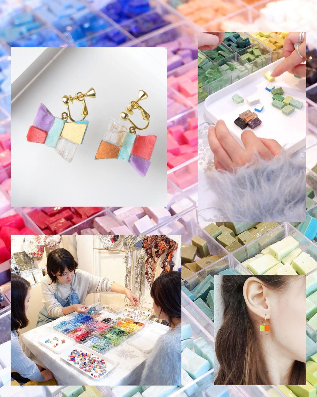 イタリア製のズマルトガラスを使い、お好きな配色でオリジナルアクセサリーを作家と一緒に制作します。