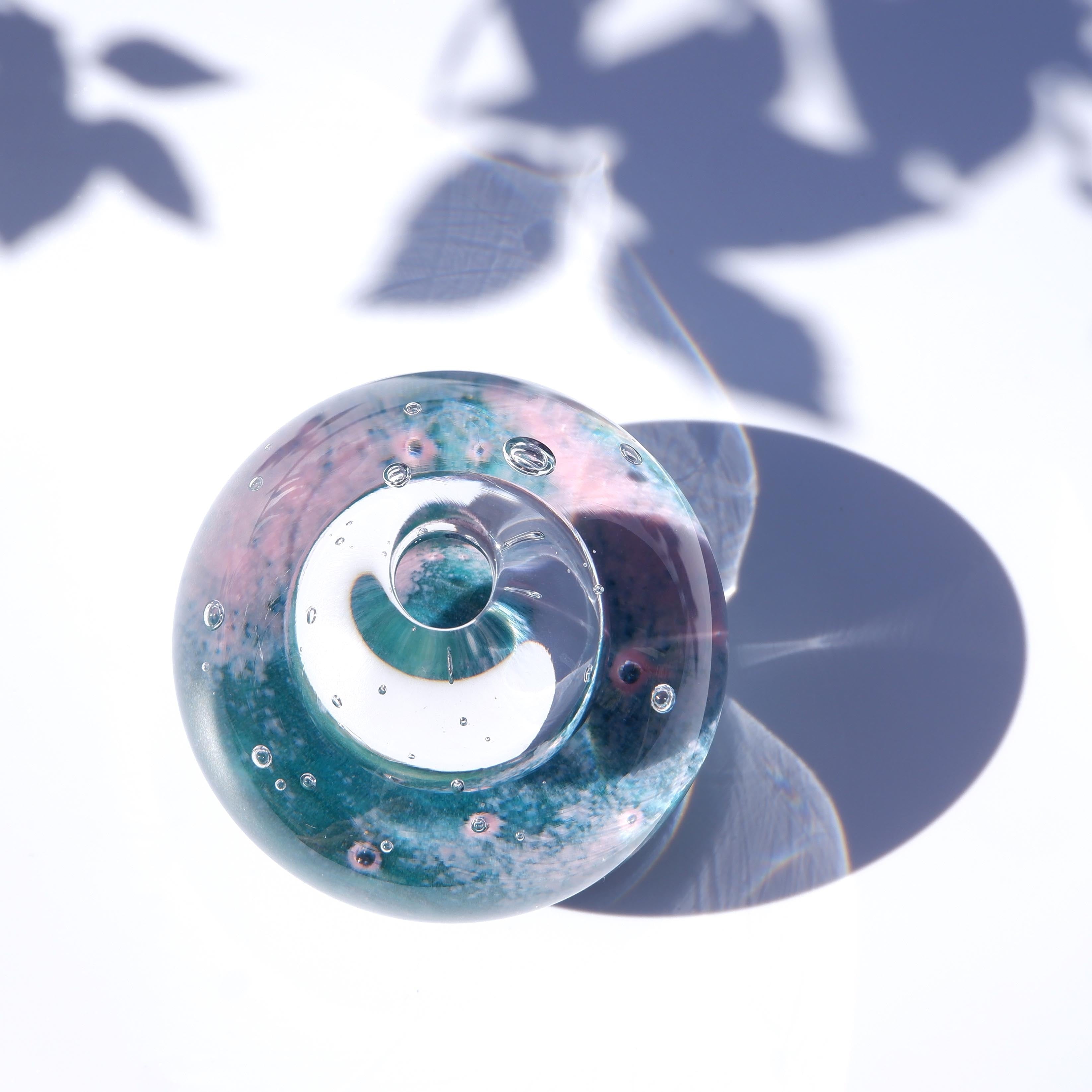 The transparent, fresh beauty of glass as a medium, and the stories enclosed within. Every time you gaze at or hold a piece, it changes its expression with the shifting light, bringing a fresh sense of serenity to your daily life.
