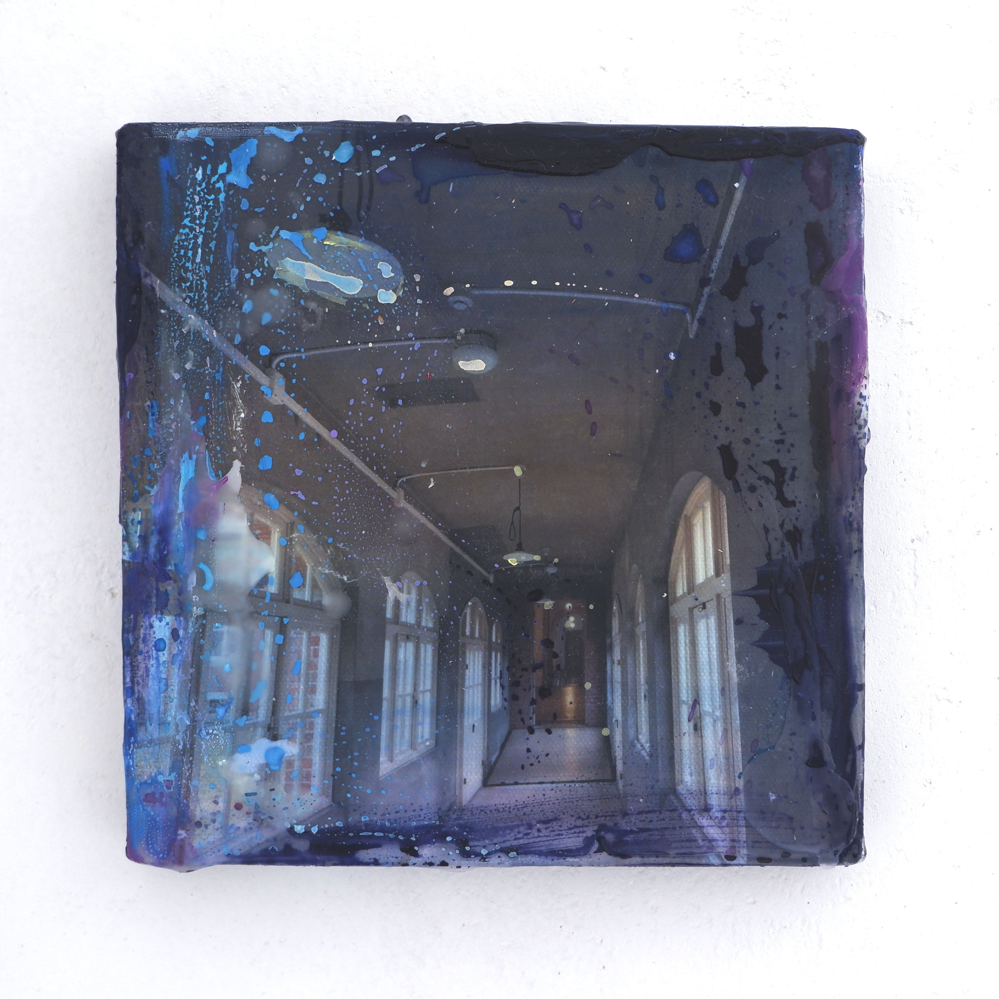 フィールドワークで撮影した写真の転写や彩色、蜜蝋によって作り出された情景は、どこかで見たような、美しく抒情的な作品です。