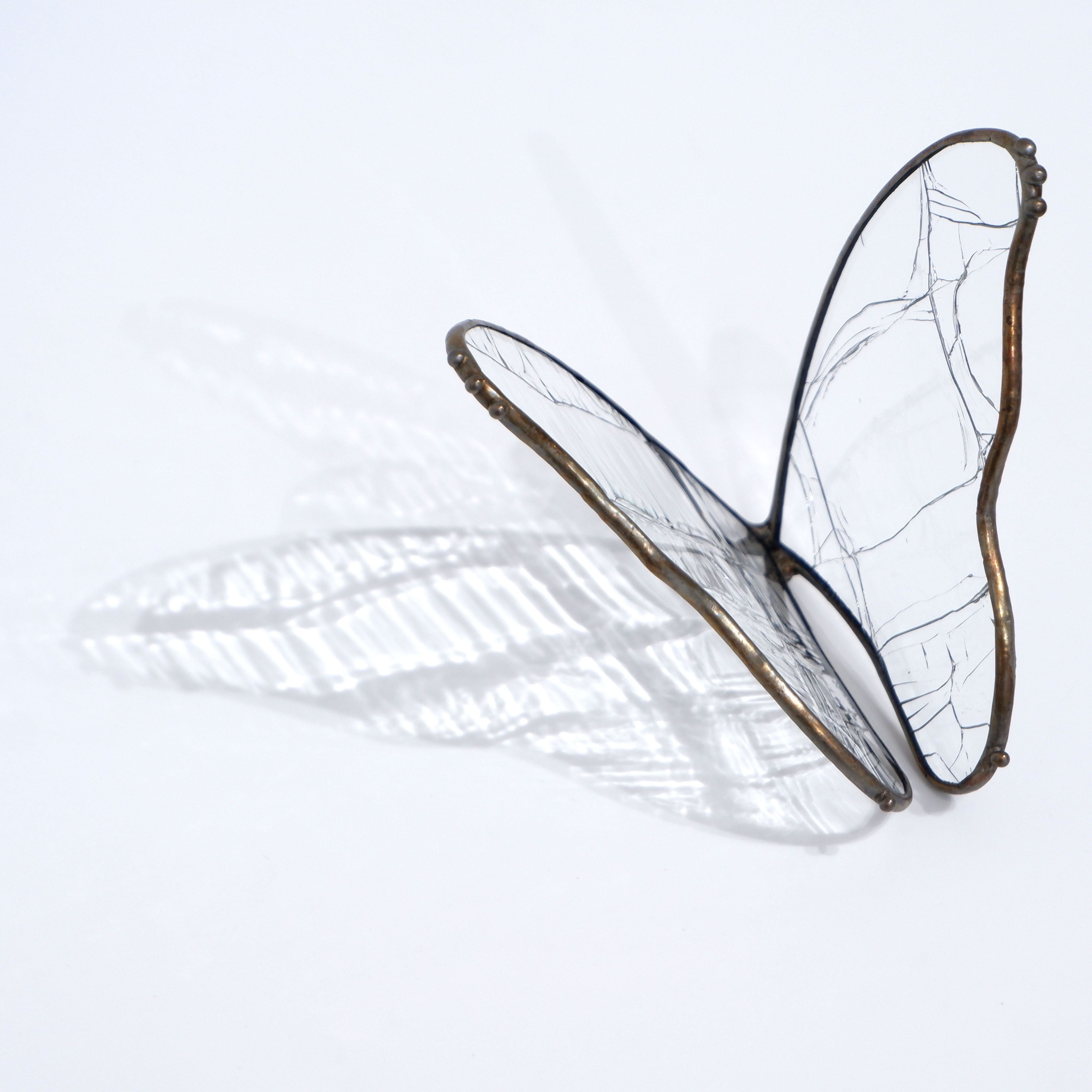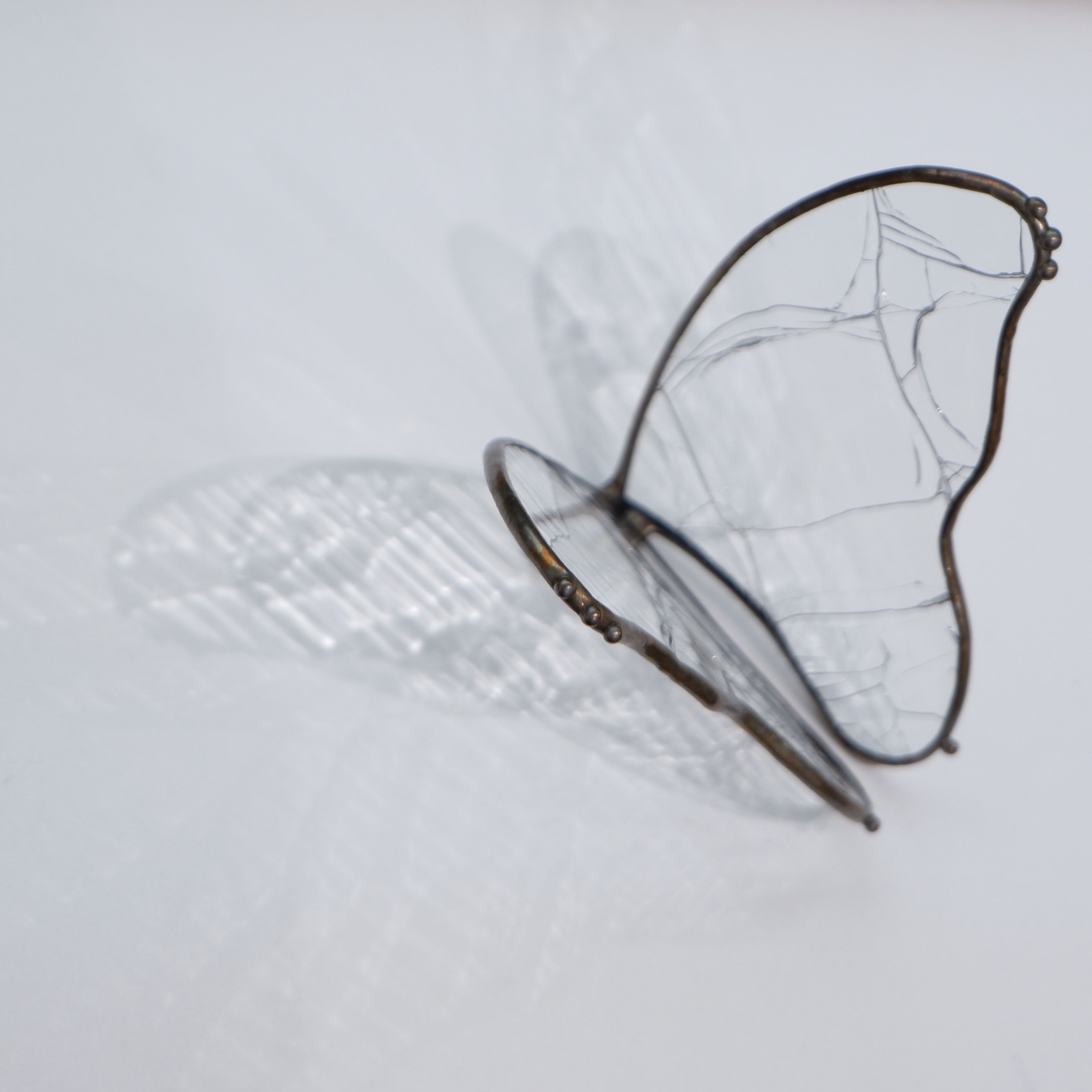 艶やかな蝶のフォルムとガラスの影とのコントラストが美しく魅力的です。